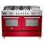 Варочный центр Bertazzoni PRO1206GMFEDROT шириной 120 см оснащен газовой варочной панелью, двумя духовыми шкафами одинакового объема и выдвижным ящиком для посуды. Корпус выполнен в глянцевом красном цвете. Панель управления, регулируемые ножки и бортик для защиты от брызг сделаны из нержавеющей стали. Варочная поверхность изготовлена из нержавеющей стали, решетки — из чугуна. На поверхности имеются 6 газовых конфорок с электроподжигом и защитой «газ-контроль», в том числе конфорка WOK для готовки в посуде с круглым дном. Справа находится стальная поверхность Теппан-яки для быстрой жарки без посуды. Регулировать мощность и тип нагрева, выбирать дополнительные опции можно при помощи поворотных переключателей и сенсорного дисплея. Духовки с 4 уровнями приготовления оснащены верхним и нижним жаром, грилем и конвекцией.