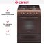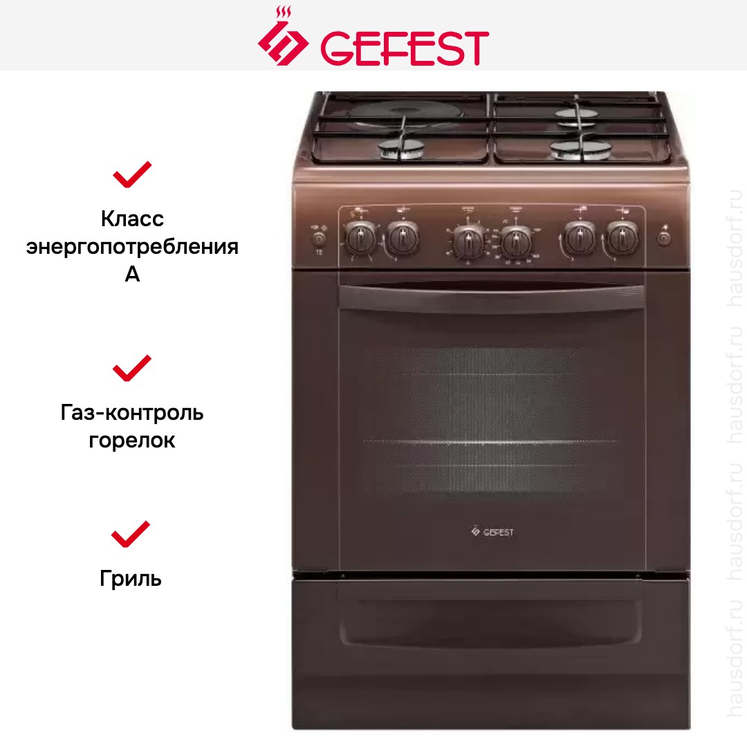 Плита Gefest PGE-6110-02-0301 выполнена в тёплом коричневом оттенке и аккуратно впишется в интерьер классической или деревенской кухни. Корпус стандартных габаритов 85×60×60 см делает её удобной для монтажа вместо старой плиты или в готовую нишу кухонного гарнитура. Матовая эмаль и плавные линии фасада скрывают технологичные элементы, а металлические поворотные переключатели придают прибору понятный и практичный вид.