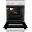 Дизайн выдержан в классическом белом цвете, что облегчает интеграцию в интерьер любого стиля. Фурнитура и фронтальные элементы одного тона создают аккуратный вид, а откидная дверца с двумя стеклами обеспечивает безопасный доступ к духовке. Габариты 85×50×59.4 см делают прибор удобным для небольших помещений и стандартных ниш, а вес около 37,4 кг упрощает установку и перемещение при необходимости. Механические поворотные переключатели понятны на интуитивном уровне и не требуют сложных настроек.