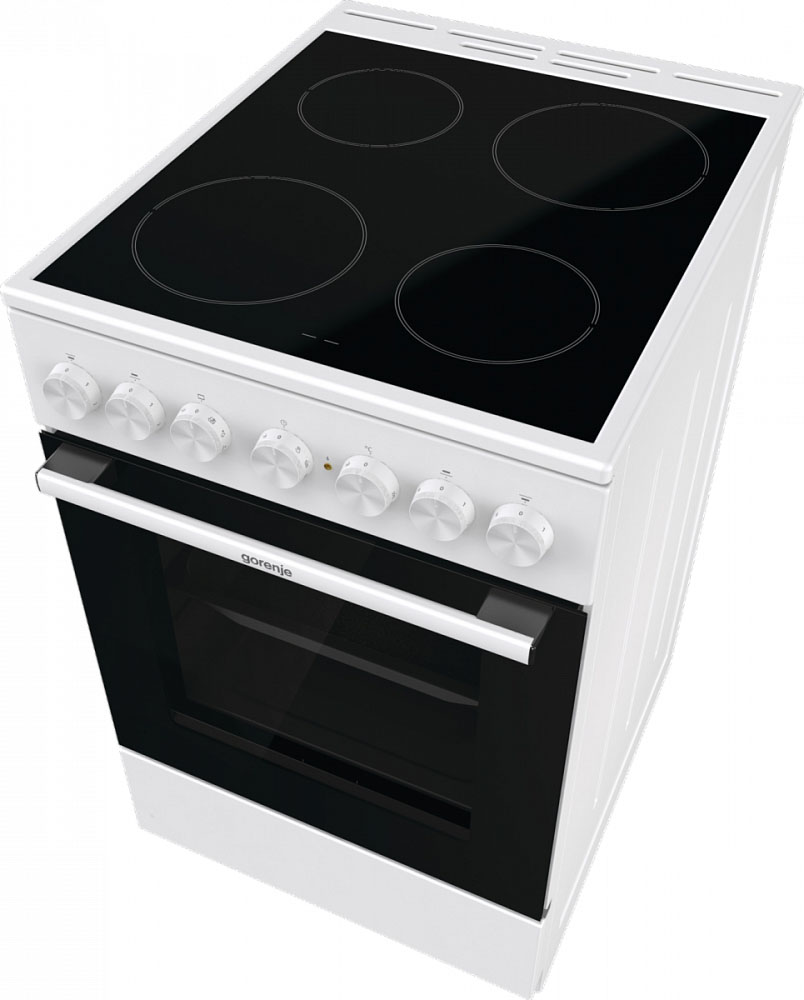 Электрическая плита Gorenje GEC5B42WG — отличный выбор как для квартиры, так и для частного дома. Цвет корпуса белый, он гармонично сочетается с мебелью и техникой похожих оттенков, а также может интересно выглядеть на контрасте с ними. Для управления используется удобная и понятная электронно-механическая система. Благодаря ей выбирать режимы приготовления и настраивать параметры температуры очень просто. Переключатели не только выполняют техническую функцию, но и поддерживают общий дизайн; тип элементов: поворотные.