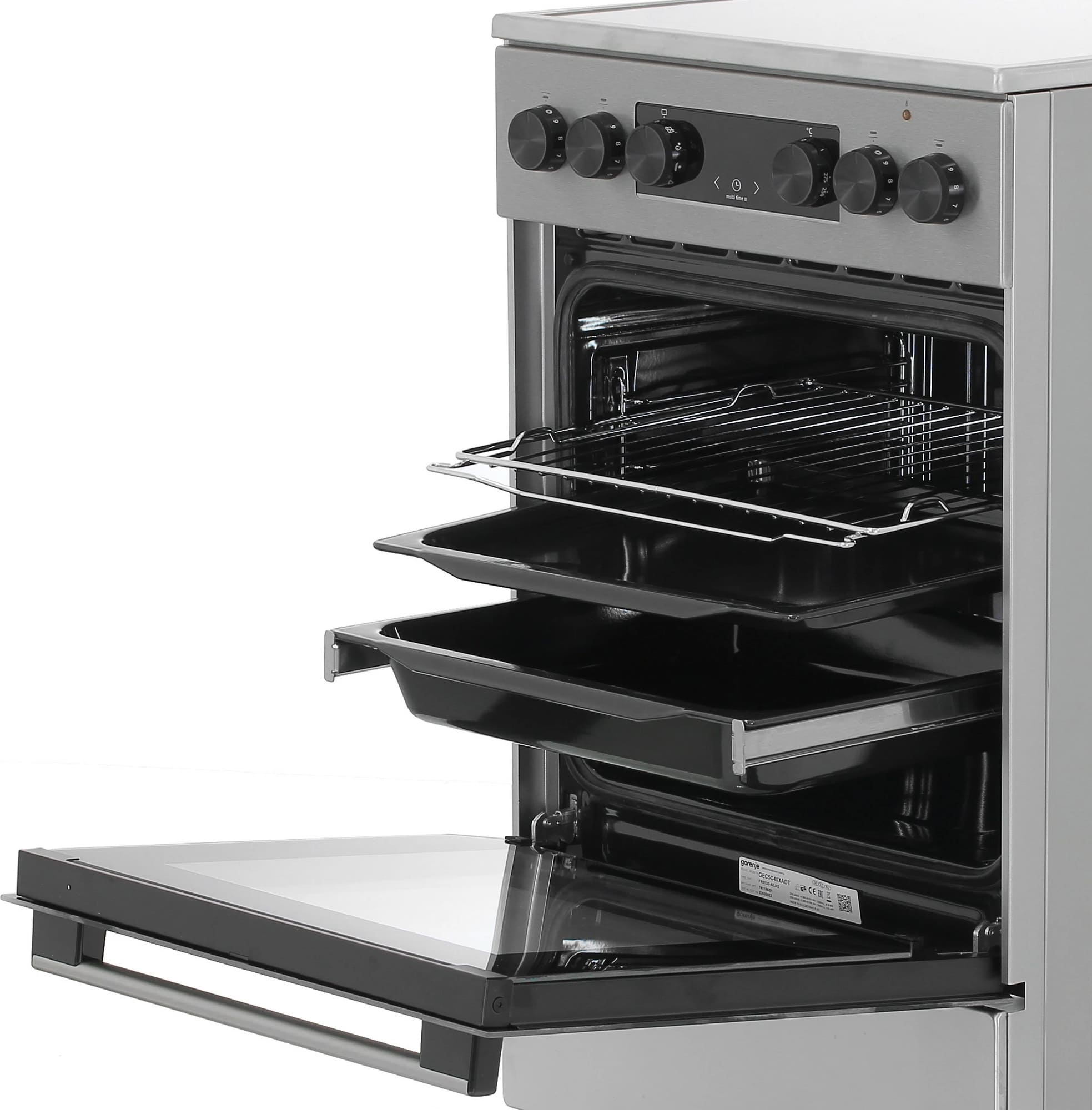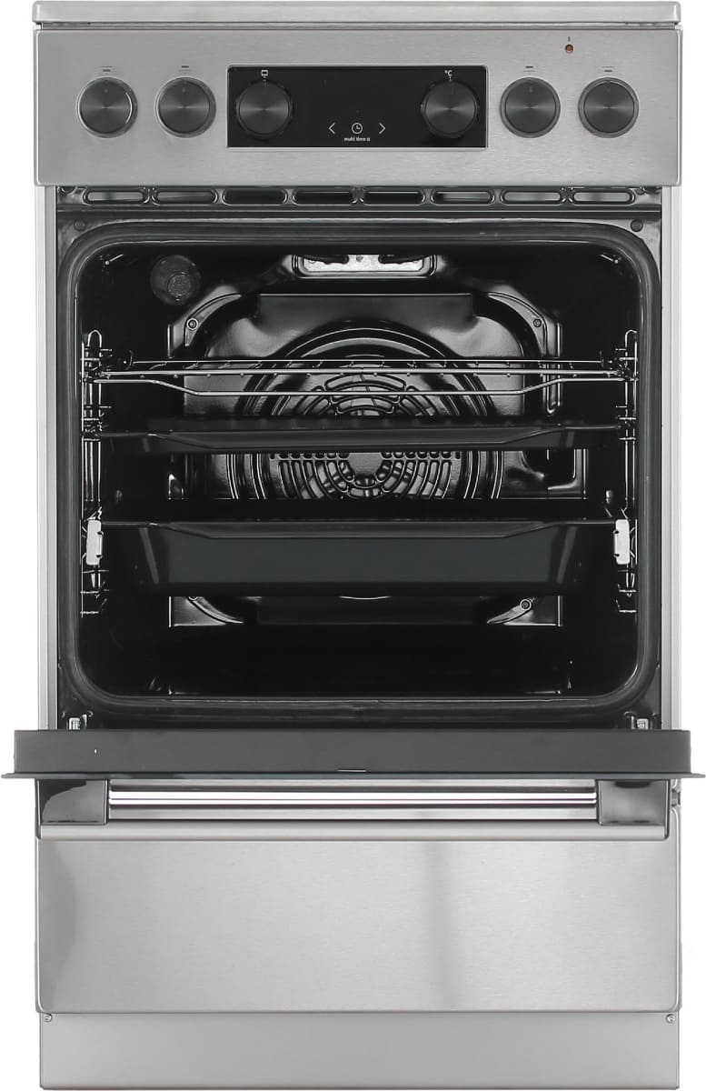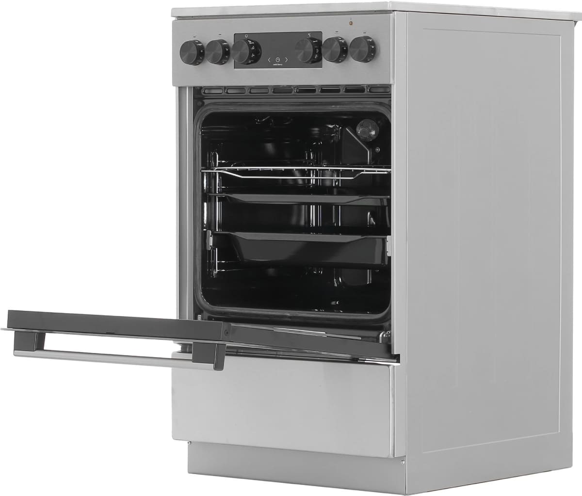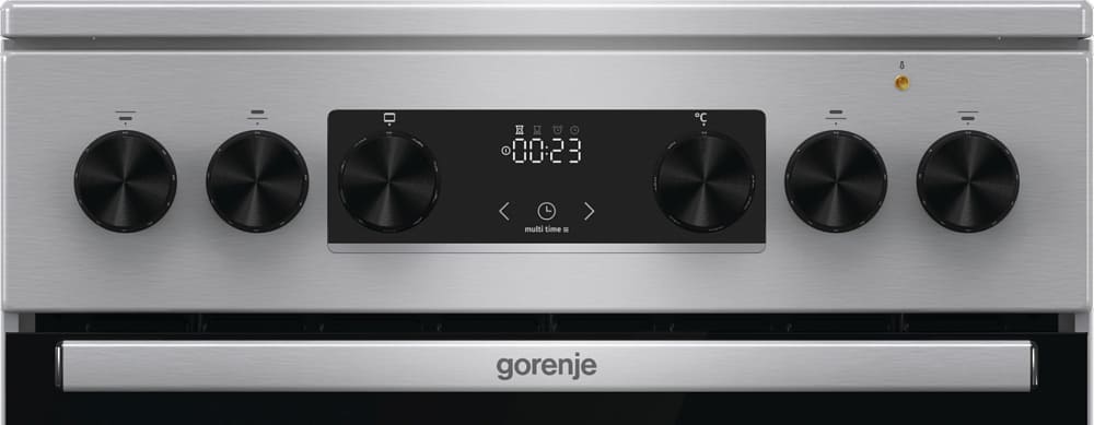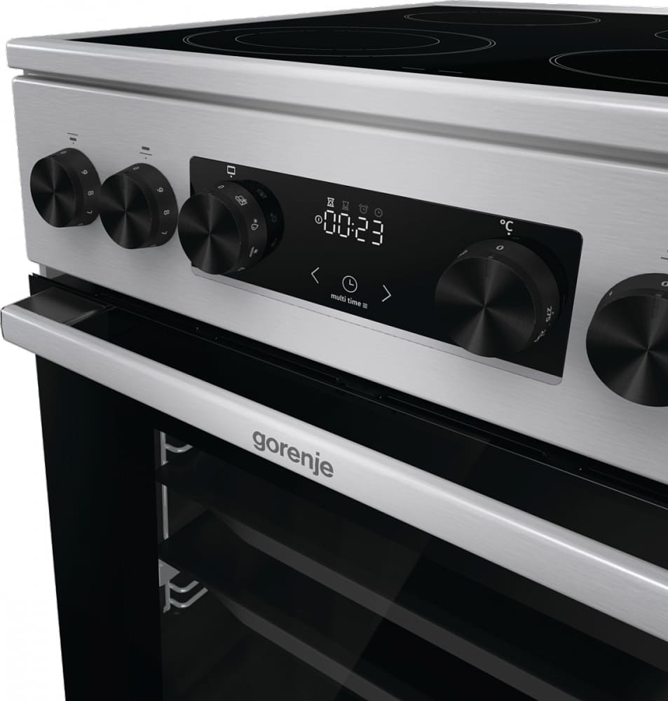 Электрическая плита Gorenje GEC5C40XAOT — отличный выбор как для квартиры, так и для частного дома. Цвет корпуса нержавеющая сталь, он гармонично сочетается с мебелью и техникой похожих оттенков, а также может интересно выглядеть на контрасте с ними. Для управления используется удобная и понятная электронно-механическая система. Благодаря ей выбирать режимы приготовления и настраивать параметры температуры очень просто. Основная информация о процессе отображается на дисплее. Переключатели не только выполняют техническую функцию, но и поддерживают общий дизайн; тип элементов: сенсорные + поворотные.