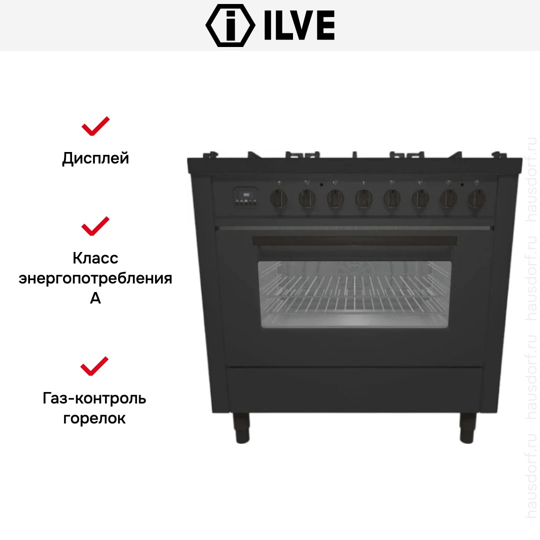 Варочный центр Илве оборудован одной духовкой, чего вполне достаточно для стандартной кулинарной рутины. Тип нагрева в камере — электрический. Большое внутреннее пространство позволяет готовить сразу несколько блюд или целиком запекать птицу, использовать объемную посуду. Вместимость составляет 97 л. Размещайте противни на разной высоте в зависимости от режима или желаемого результата. Общее количество уровней: 5. Основные функции, которые уже заложены производителем: Верхний и нижний нагрев, Работа верхнего и нижнего нагревательных элементов вместе с вентилятором, Гриль + конвекция, Нижний нагрев, Приготовление пиццы, Конвекция, Гриль, ECO.