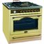Устройства с тремя духовками также имеют один основной и две дополнительных шкафа разного объема: например, плиты Bertazzoni оснащены большой духовкой объемом 69 литров, средней объемом 54 литра и малой объемом 24 литра. Духовки располагаются в два ряда: две меньшие духовки в одном ряду, большая и ящик для посуды в другом.