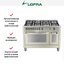 Ширина варочных центров — параметр, которых варьируется в самых больших пределах. Она зависит прежде всего от характеристик модели, в частности, от количества духовок. Производители предлагают модели минимальной шириной 59-60 см с одной духовкой. В магазинах также представлены модели с одной духовкой увеличенной ширины, которая достигает 90 см. Такую же ширину могут иметь варочные центры с двумя духовками, расположенными бок о бок. Модели Lofra с тремя духовками имеют ширину 120 см, а максимальная ширина около 196-200 см отличает модели Restart с дровяной печью и несколькими духовками.
