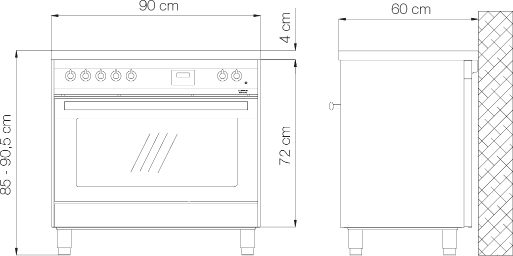 Ширина варочных центров — параметр, которых варьируется в самых больших пределах. Она зависит прежде всего от характеристик модели, в частности, от количества духовок. Производители предлагают модели минимальной шириной 59-60 см с одной духовкой. В магазинах также представлены модели с одной духовкой увеличенной ширины, которая достигает 90 см. Такую же ширину могут иметь варочные центры с двумя духовками, расположенными бок о бок. Модели Lofra с тремя духовками имеют ширину 120 см, а максимальная ширина около 196-200 см отличает модели Restart с дровяной печью и несколькими духовками.