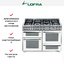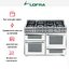 Ширина варочных центров — параметр, которых варьируется в самых больших пределах. Она зависит прежде всего от характеристик модели, в частности, от количества духовок. Производители предлагают модели минимальной шириной 59-60 см с одной духовкой. В магазинах также представлены модели с одной духовкой увеличенной ширины, которая достигает 90 см. Такую же ширину могут иметь варочные центры с двумя духовками, расположенными бок о бок. Модели Lofra с тремя духовками имеют ширину 120 см, а максимальная ширина около 196-200 см отличает модели Restart с дровяной печью и несколькими духовками.