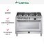 Устройства с тремя духовками также имеют один основной и две дополнительных шкафа разного объема: например, плиты Bertazzoni оснащены большой духовкой объемом 69 литров, средней объемом 54 литра и малой объемом 24 литра. Духовки располагаются в два ряда: две меньшие духовки в одном ряду, большая и ящик для посуды в другом.