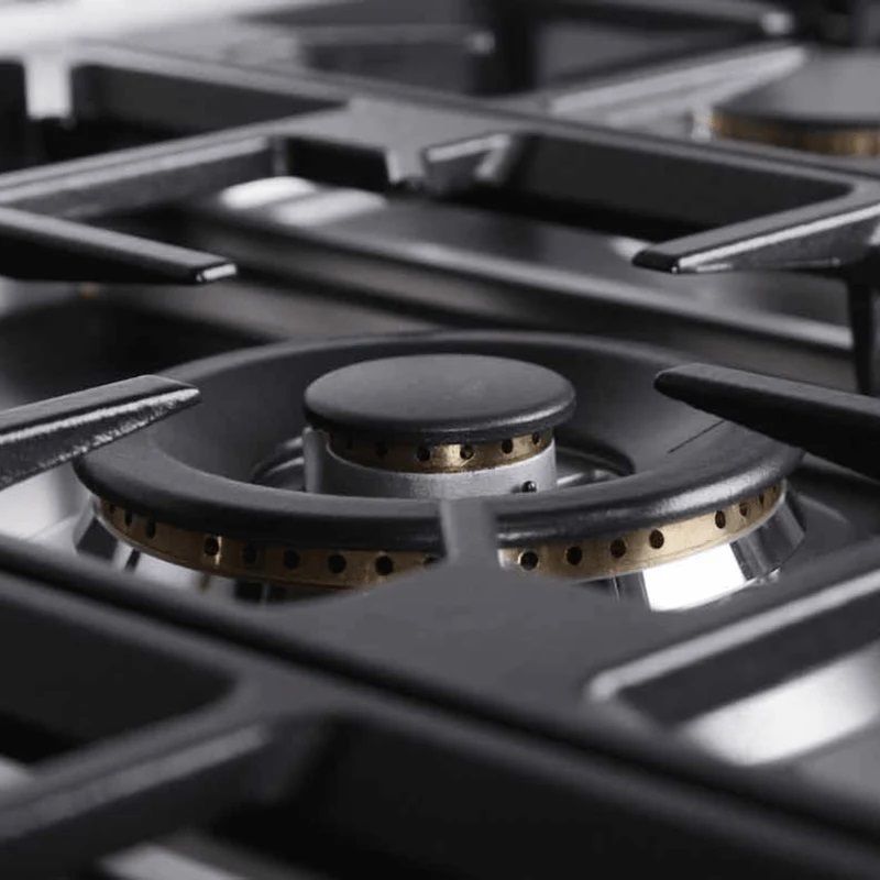Поверхность оснащена семью газовыми горелками разной интенсивности, включая мощные зоны для быстрого закипания и экономичные — для длительного томления. Такая конфигурация даёт возможность одновременно готовить несколько яств с разными требованиями к нагреву, не ограничивая кулинарную свободу даже при масштабных застольях.
