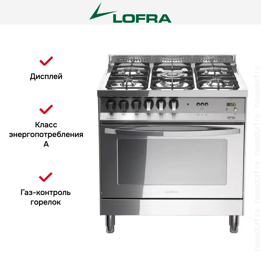 Комбинированная плита Lofra PLG86GVT/C — отличный выбор как для квартиры, так и для частного дома. Цвет корпуса нержавеющая сталь, он гармонично сочетается с мебелью и техникой похожих оттенков, а также может интересно выглядеть на контрасте с ними. Для управления используется удобная и понятная механическая система. Благодаря ей выбирать режимы приготовления и настраивать параметры температуры очень просто. Основная информация о процессе отображается на дисплее. Переключатели не только выполняют техническую функцию, но и поддерживают общий дизайн; тип элементов: поворотные + кнопки.