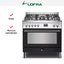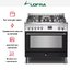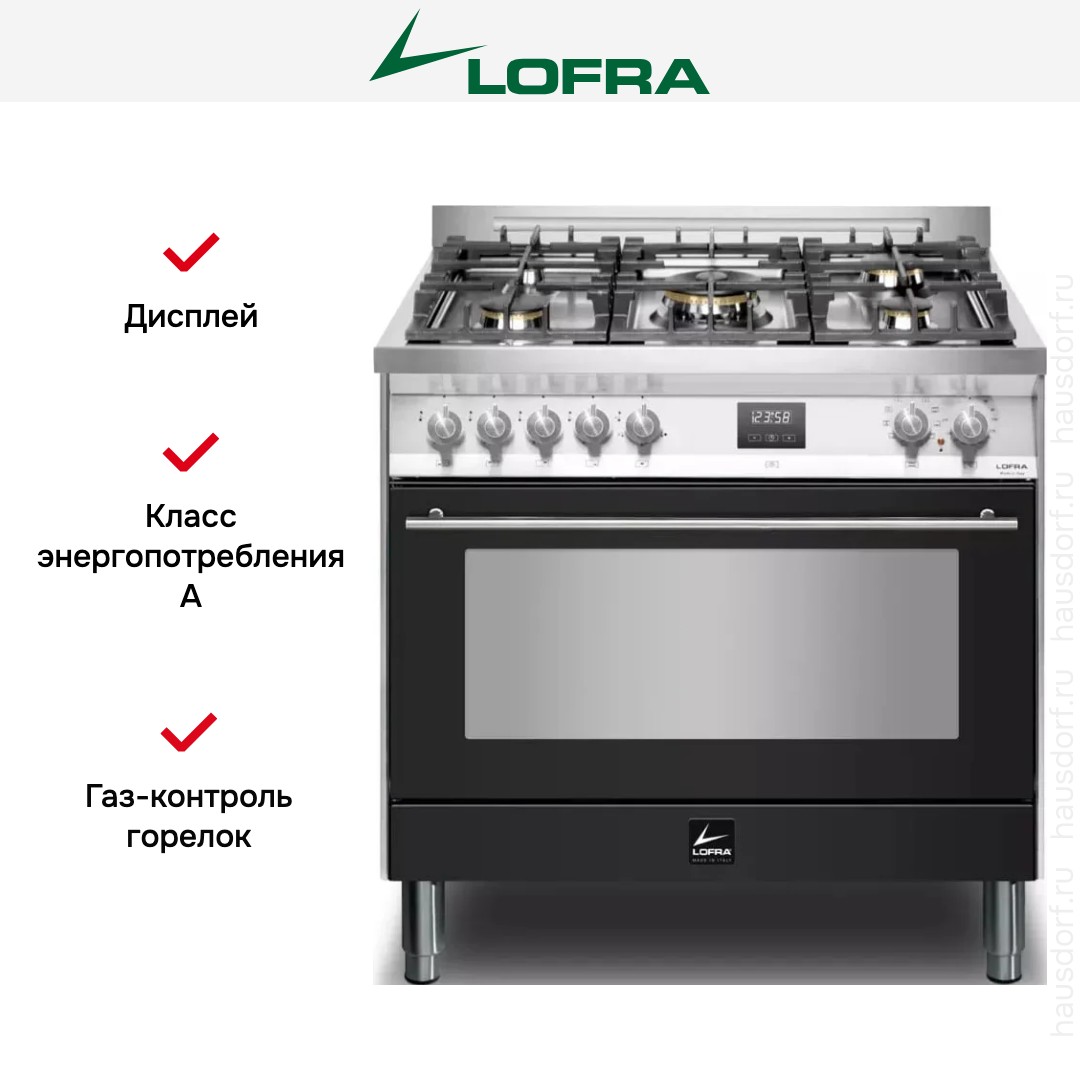Комбинированная плита Lofra PNMG96WMFT/AEO — отличный выбор как для квартиры, так и для частного дома. Цвет корпуса черный, он гармонично сочетается с мебелью и техникой похожих оттенков, а также может интересно выглядеть на контрасте с ними. Для управления используется удобная и понятная электронно-механическая система. Благодаря ей выбирать режимы приготовления и настраивать параметры температуры очень просто. Основная информация о процессе отображается на дисплее. Переключатели не только выполняют техническую функцию, но и поддерживают общий дизайн; тип элементов: сенсорные + поворотные.