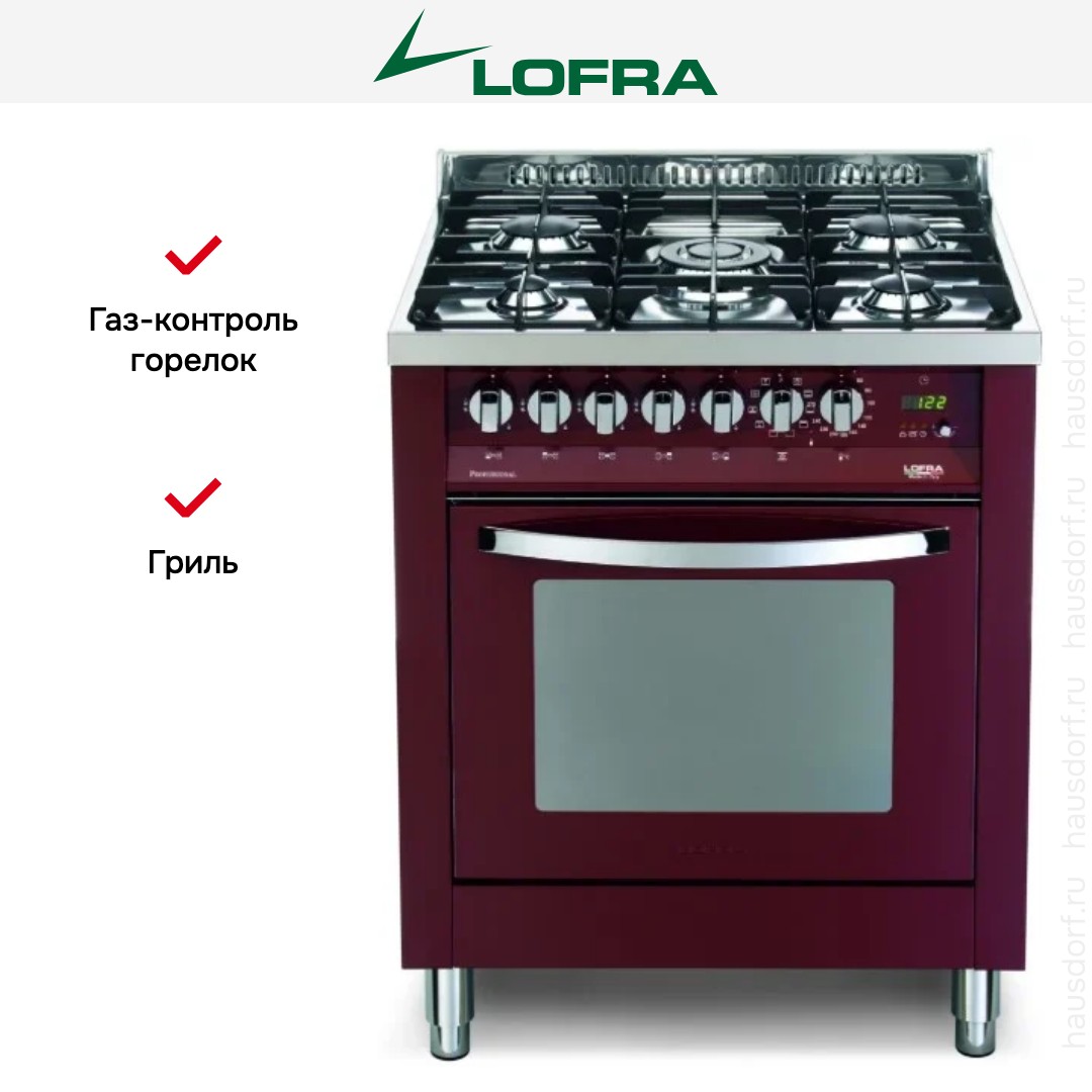 Комбинированная плита Lofra PR76MFT/C — отличный выбор как для квартиры, так и для частного дома. Цвет корпуса бордо, он гармонично сочетается с мебелью и техникой похожих оттенков, а также может интересно выглядеть на контрасте с ними. Для управления используется удобная и понятная электронно-механическая система. Благодаря ей выбирать режимы приготовления и настраивать параметры температуры очень просто. Переключатели не только выполняют техническую функцию, но и поддерживают общий дизайн; тип элементов: поворотные + кнопки.