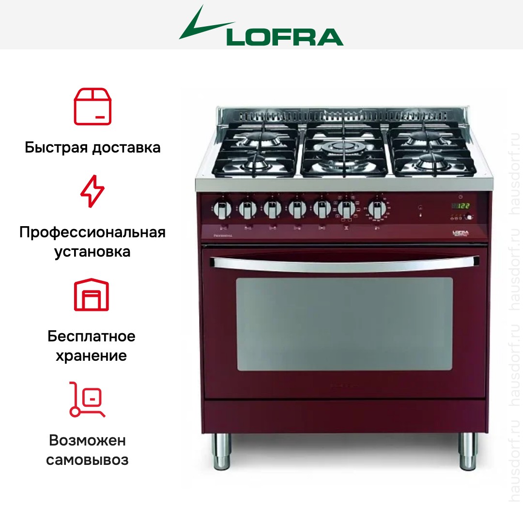 Комбинированная плита Lofra PRG86MFT/C — отличный выбор как для квартиры, так и для частного дома. Цвет корпуса бордо, он гармонично сочетается с мебелью и техникой похожих оттенков, а также может интересно выглядеть на контрасте с ними. Для управления используется удобная и понятная механическая система. Благодаря ей выбирать режимы приготовления и настраивать параметры температуры очень просто. Основная информация о процессе отображается на дисплее. Переключатели не только выполняют техническую функцию, но и поддерживают общий дизайн; тип элементов: поворотные.