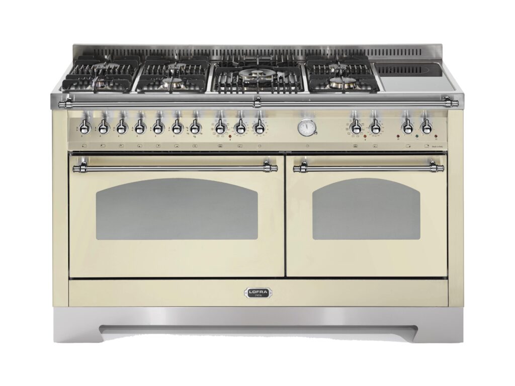 Ширина варочных центров — параметр, которых варьируется в самых больших пределах. Она зависит прежде всего от характеристик модели, в частности, от количества духовок. Производители предлагают модели минимальной шириной 59-60 см с одной духовкой. В магазинах также представлены модели с одной духовкой увеличенной ширины, которая достигает 90 см. Такую же ширину могут иметь варочные центры с двумя духовками, расположенными бок о бок. Модели Lofra с тремя духовками имеют ширину 120 см, а максимальная ширина около 196-200 см отличает модели Restart с дровяной печью и несколькими духовками.