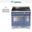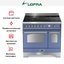 Устройства с тремя духовками также имеют один основной и две дополнительных шкафа разного объема: например, плиты Bertazzoni оснащены большой духовкой объемом 69 литров, средней объемом 54 литра и малой объемом 24 литра. Духовки располагаются в два ряда: две меньшие духовки в одном ряду, большая и ящик для посуды в другом.