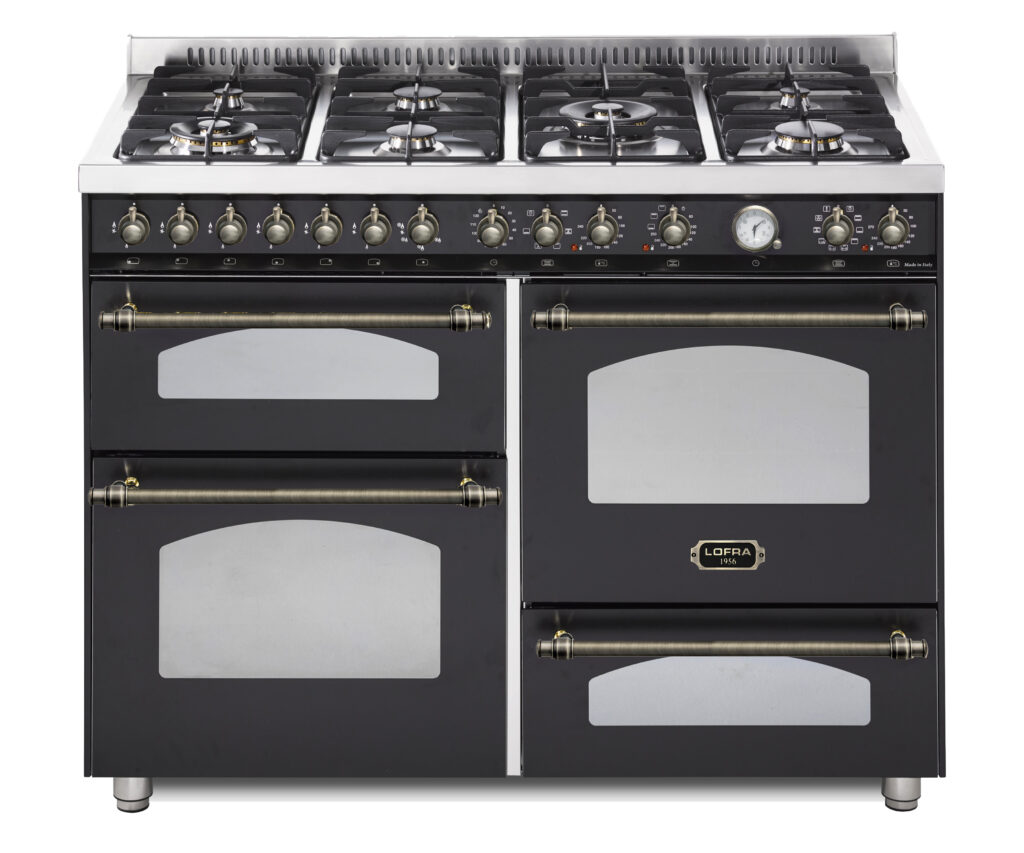 Ширина варочных центров — параметр, которых варьируется в самых больших пределах. Она зависит прежде всего от характеристик модели, в частности, от количества духовок. Производители предлагают модели минимальной шириной 59-60 см с одной духовкой. В магазинах также представлены модели с одной духовкой увеличенной ширины, которая достигает 90 см. Такую же ширину могут иметь варочные центры с двумя духовками, расположенными бок о бок. Модели Lofra с тремя духовками имеют ширину 120 см, а максимальная ширина около 196-200 см отличает модели Restart с дровяной печью и несколькими духовками.