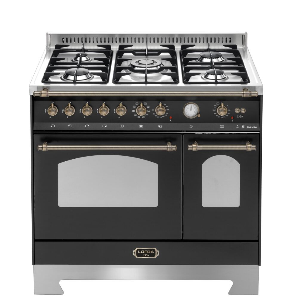 Комбинированная плита Lofra RNMD96GVGTE/Ci Bronze — отличный выбор как для квартиры, так и для частного дома. Цвет корпуса черный, он гармонично сочетается с мебелью и техникой похожих оттенков, а также может интересно выглядеть на контрасте с ними. Для управления используется удобная и понятная механическая система. Благодаря ей выбирать режимы приготовления и настраивать параметры температуры очень просто. Переключатели не только выполняют техническую функцию, но и поддерживают общий дизайн; тип элементов: поворотные.