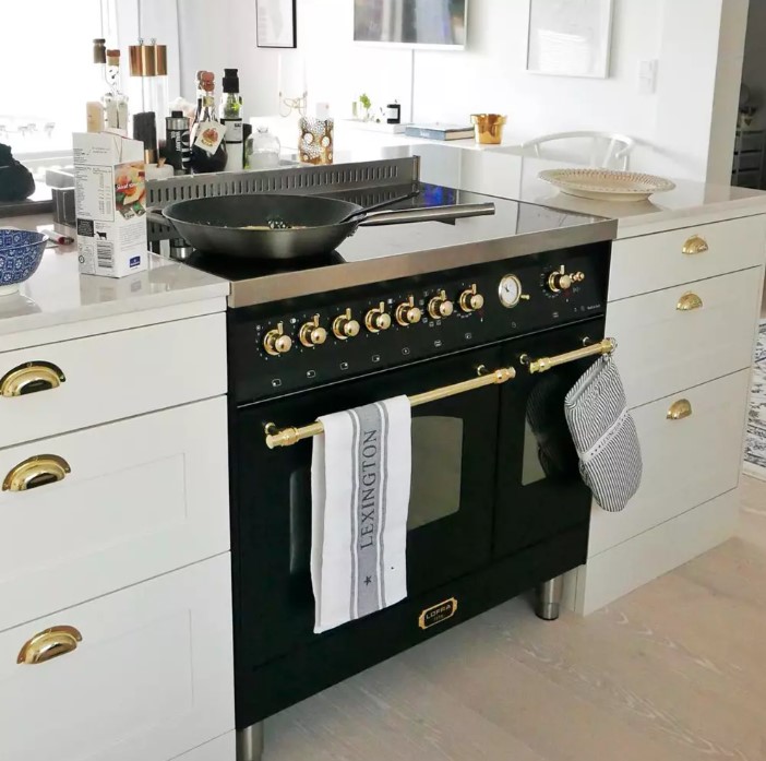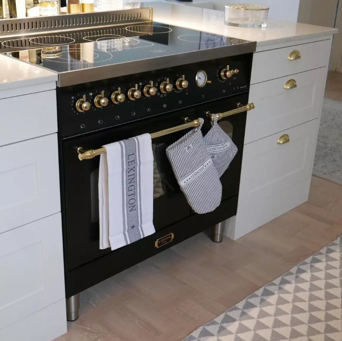 Гораздо разнообразнее представлена фурнитура в моделях в классическом, средиземноморском, деревенском или ретро-дизайне. Так, модели производства Lofra оснащаются фигурными рейлингами и поворотными переключателями цвета латуни, состаренного серебра, хрома, золота. В варочных центрах La Cornue интерес представляет круглая накладная ручка дверцы духовки серебристого цвета. Фурнитурой в стиле ретро оснащаются варочные центры производства Smeg, Kaiser, Bertazzoni, но особенно разнообразны и оригинальны модели производства итальянской компании Restart с фурнитурой из меди и латуни. Каждая такая модель изготавливается по индивидуальному проекту, и покупатель может выбрать цвет и форму переключателей, дверцы и ручек духовых шкафов и другие элементы дизайна.
