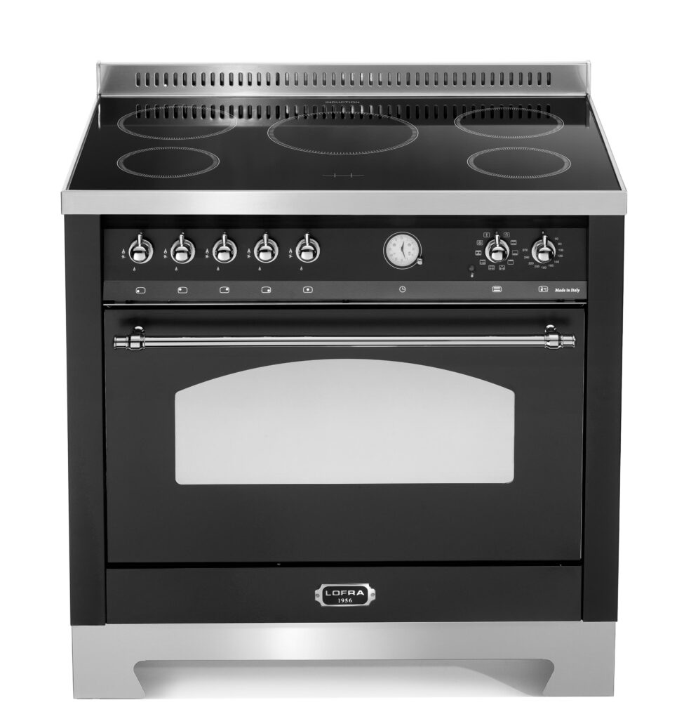 Электрическая плита Lofra RNMG96MFT/5i Chrome — отличный выбор как для квартиры, так и для частного дома. Цвет корпуса черный, он гармонично сочетается с мебелью и техникой похожих оттенков, а также может интересно выглядеть на контрасте с ними. Для управления используется удобная и понятная механическая система. Благодаря ей выбирать режимы приготовления и настраивать параметры температуры очень просто. Переключатели не только выполняют техническую функцию, но и поддерживают общий дизайн; тип элементов: поворотные.