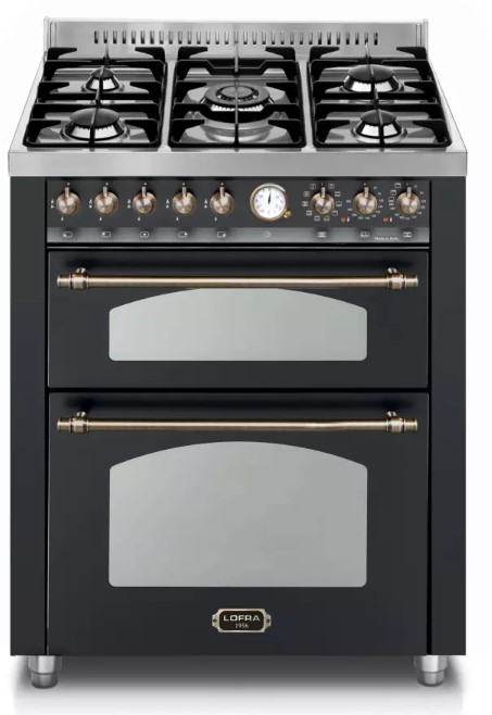Комбинированная плита Lofra RNMUD76MFTE/CI Brass — отличный выбор как для квартиры, так и для частного дома. Цвет корпуса черный, он гармонично сочетается с мебелью и техникой похожих оттенков, а также может интересно выглядеть на контрасте с ними. Для управления используется удобная и понятная механическая система. Благодаря ей выбирать режимы приготовления и настраивать параметры температуры очень просто. Переключатели не только выполняют техническую функцию, но и поддерживают общий дизайн; тип элементов: поворотные.