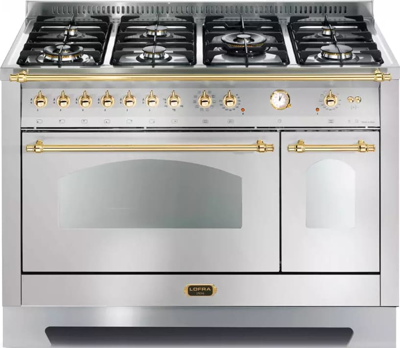 Варочный центр Lofra RSD126MFT+E/2AEO BRASS — это масштабное и роскошное решение для кухни, где важны профессиональные возможности, эстетика и безупречное качество исполнения. Модель работает в газо-электрическом формате и предлагает газовую варочную поверхность с семью конфорками разной мощности, а также два независимых электрических духовых шкафа, что делает её идеальной для приготовления сложных многосоставных меню без компромиссов.