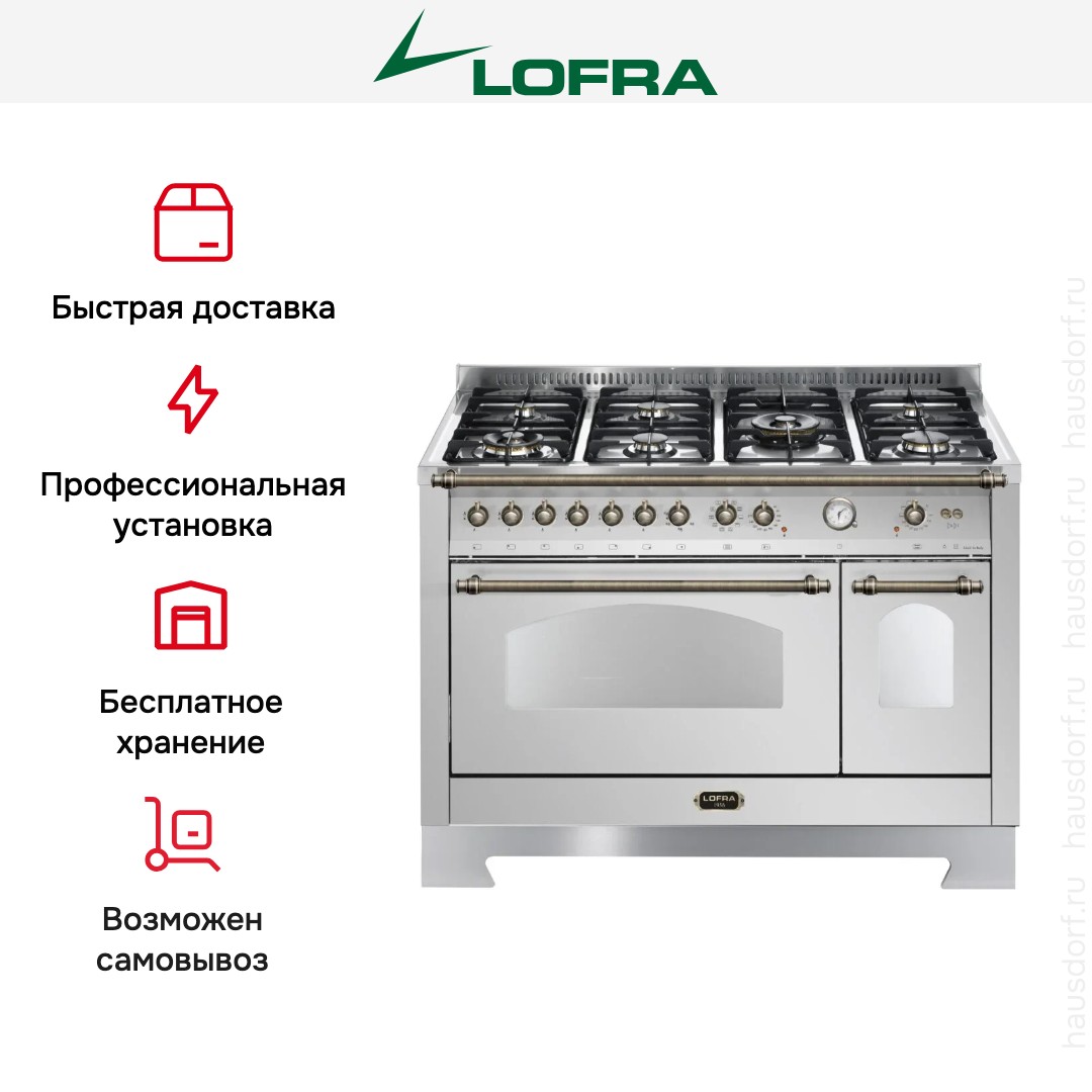 Варочный центр Лофра оборудован несколькими духовками; одну из них можно использовать как основную на постоянной основе, другие как дополнительные. Тип нагрева в камере — электрический. Размещайте противни на разной высоте в зависимости от режима или желаемого результата.