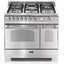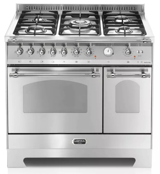 Устройства с тремя духовками также имеют один основной и две дополнительных шкафа разного объема: например, плиты Bertazzoni оснащены большой духовкой объемом 69 литров, средней объемом 54 литра и малой объемом 24 литра. Духовки располагаются в два ряда: две меньшие духовки в одном ряду, большая и ящик для посуды в другом.