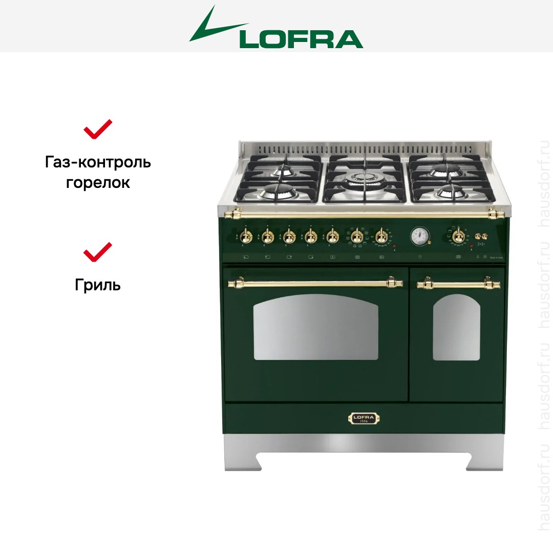 Комбинированная плита Lofra RVD96MFTE/Ci Brass — отличный выбор как для квартиры, так и для частного дома. Цвет корпуса зеленый, он гармонично сочетается с мебелью и техникой похожих оттенков, а также может интересно выглядеть на контрасте с ними. Для управления используется удобная и понятная механическая система. Благодаря ей выбирать режимы приготовления и настраивать параметры температуры очень просто. Переключатели не только выполняют техническую функцию, но и поддерживают общий дизайн; тип элементов: поворотные.