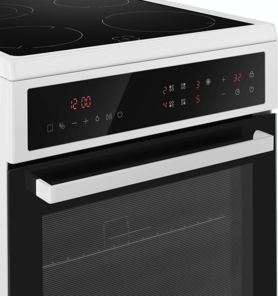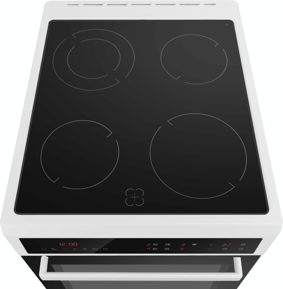 Электрическая плита Maunfeld MEC511CW10TD — отличный выбор как для квартиры, так и для частного дома. Цвет корпуса белый, он гармонично сочетается с мебелью и техникой похожих оттенков, а также может интересно выглядеть на контрасте с ними. На внутренней поверхности двери расположена таблица доступных рецептов — полезная и необычная фишка. Для управления используется удобная и понятная электронная система. Благодаря ей выбирать режимы приготовления и настраивать параметры температуры очень просто. Основная информация о процессе отображается на дисплее. Переключатели не только выполняют техническую функцию, но и поддерживают общий дизайн; тип элементов: сенсорные.