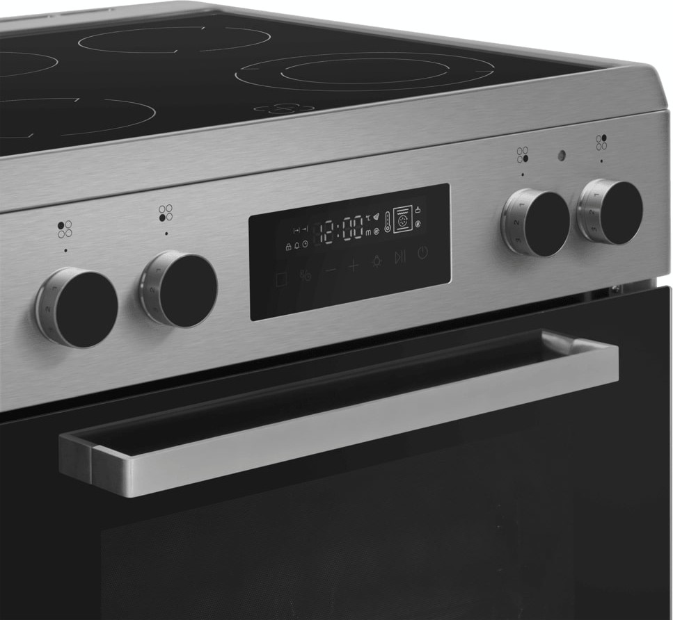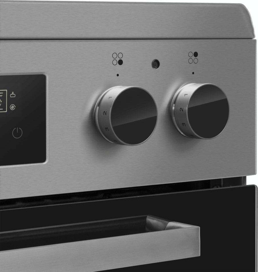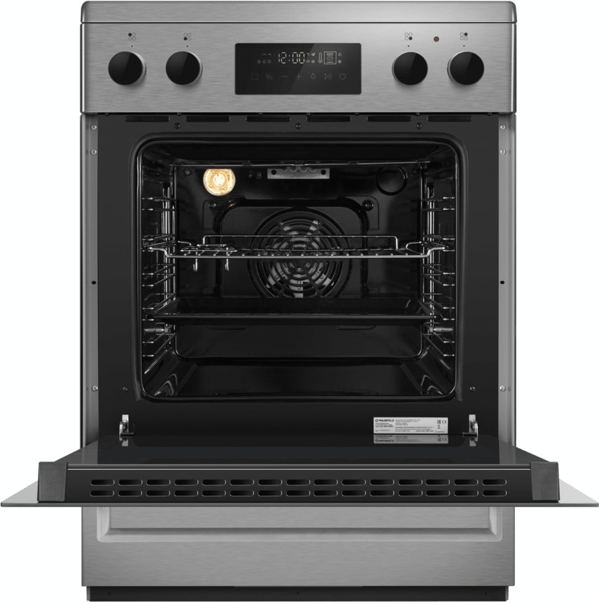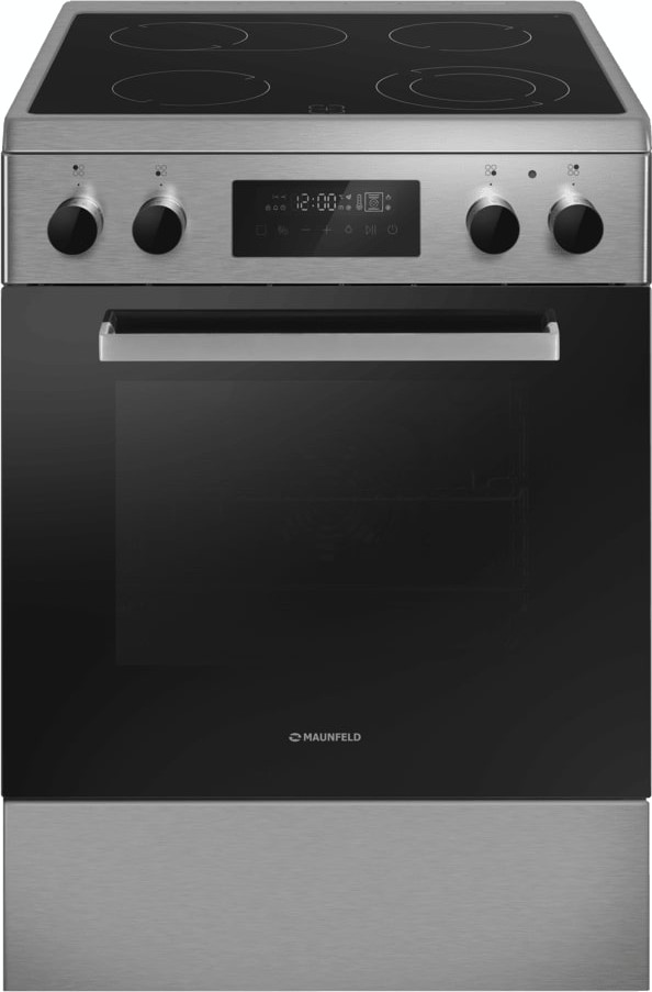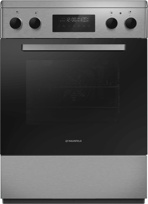 Электрическая плита Maunfeld MEC611CS09TD — отличный выбор как для квартиры, так и для частного дома. Цвет корпуса нержавеющая сталь, он гармонично сочетается с мебелью и техникой похожих оттенков, а также может интересно выглядеть на контрасте с ними. На внутренней поверхности двери расположена таблица доступных рецептов — полезная и необычная фишка. Для управления используется удобная и понятная электронная система. Благодаря ей выбирать режимы приготовления и настраивать параметры температуры очень просто. Основная информация о процессе отображается на дисплее. Переключатели не только выполняют техническую функцию, но и поддерживают общий дизайн; тип элементов: сенсорные + поворотные.