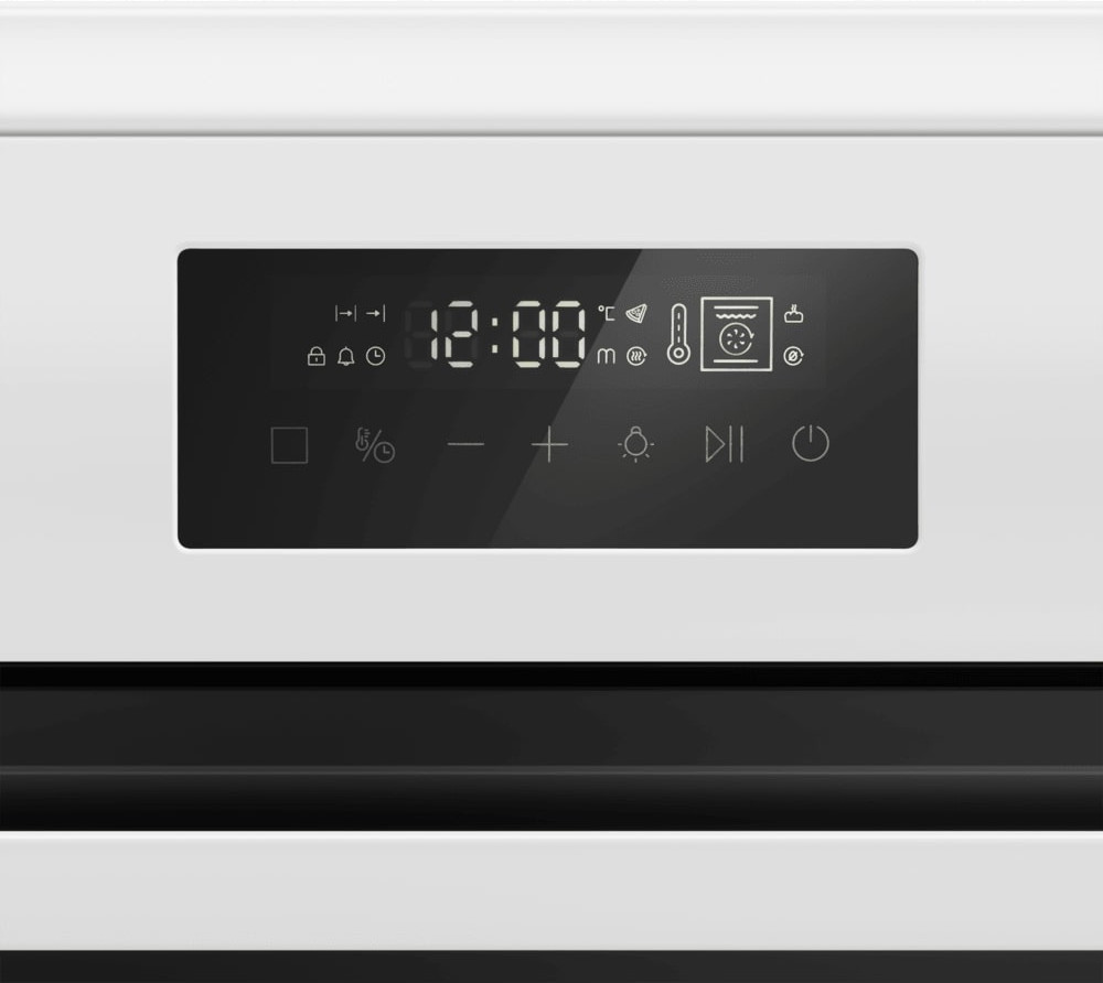 Электрическая плита Maunfeld MEC611CW09TD — отличный выбор как для квартиры, так и для частного дома. Цвет корпуса белый, он гармонично сочетается с мебелью и техникой похожих оттенков, а также может интересно выглядеть на контрасте с ними. На внутренней поверхности двери расположена таблица доступных рецептов — полезная и необычная фишка. Для управления используется удобная и понятная электронная система. Благодаря ей выбирать режимы приготовления и настраивать параметры температуры очень просто. Основная информация о процессе отображается на дисплее. Переключатели не только выполняют техническую функцию, но и поддерживают общий дизайн; тип элементов: сенсорные + поворотные.