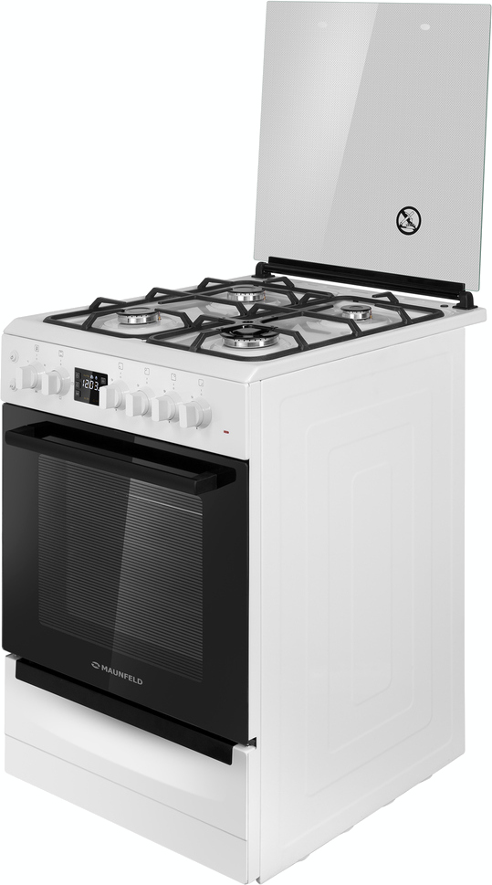 Комбинированная плита Maunfeld MGC60ECW05 — отличный выбор как для квартиры, так и для частного дома. Цвет корпуса белый, он гармонично сочетается с мебелью и техникой похожих оттенков, а также может интересно выглядеть на контрасте с ними. Для управления используется удобная и понятная электронная система. Благодаря ей выбирать режимы приготовления и настраивать параметры температуры очень просто. Основная информация о процессе отображается на дисплее. Переключатели не только выполняют техническую функцию, но и поддерживают общий дизайн; тип элементов: поворотные + кнопки.