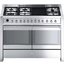 Ширина варочных центров — параметр, которых варьируется в самых больших пределах. Она зависит прежде всего от характеристик модели, в частности, от количества духовок. Производители предлагают модели минимальной шириной 59-60 см с одной духовкой. В магазинах также представлены модели с одной духовкой увеличенной ширины, которая достигает 90 см. Такую же ширину могут иметь варочные центры с двумя духовками, расположенными бок о бок. Модели Lofra с тремя духовками имеют ширину 120 см, а максимальная ширина около 196-200 см отличает модели Restart с дровяной печью и несколькими духовками.