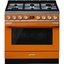 Варочный центр Smeg в ярком оранжевом цвете. 10 функций приготовления и 20 автоматических программ позволяют с легкостью готовить самые сложные блюда. Газовая варочная поверхность с 6 конфорками позволяет готовить в посуде с круглым дном. Для включения газа предусмотрен электроподжиг. Духовой шкаф поможет сэкономить время при готовке на нескольких уровнях сразу в режиме Турбо. Для извлечения противней служат телескопические направляющие.