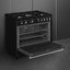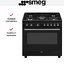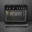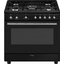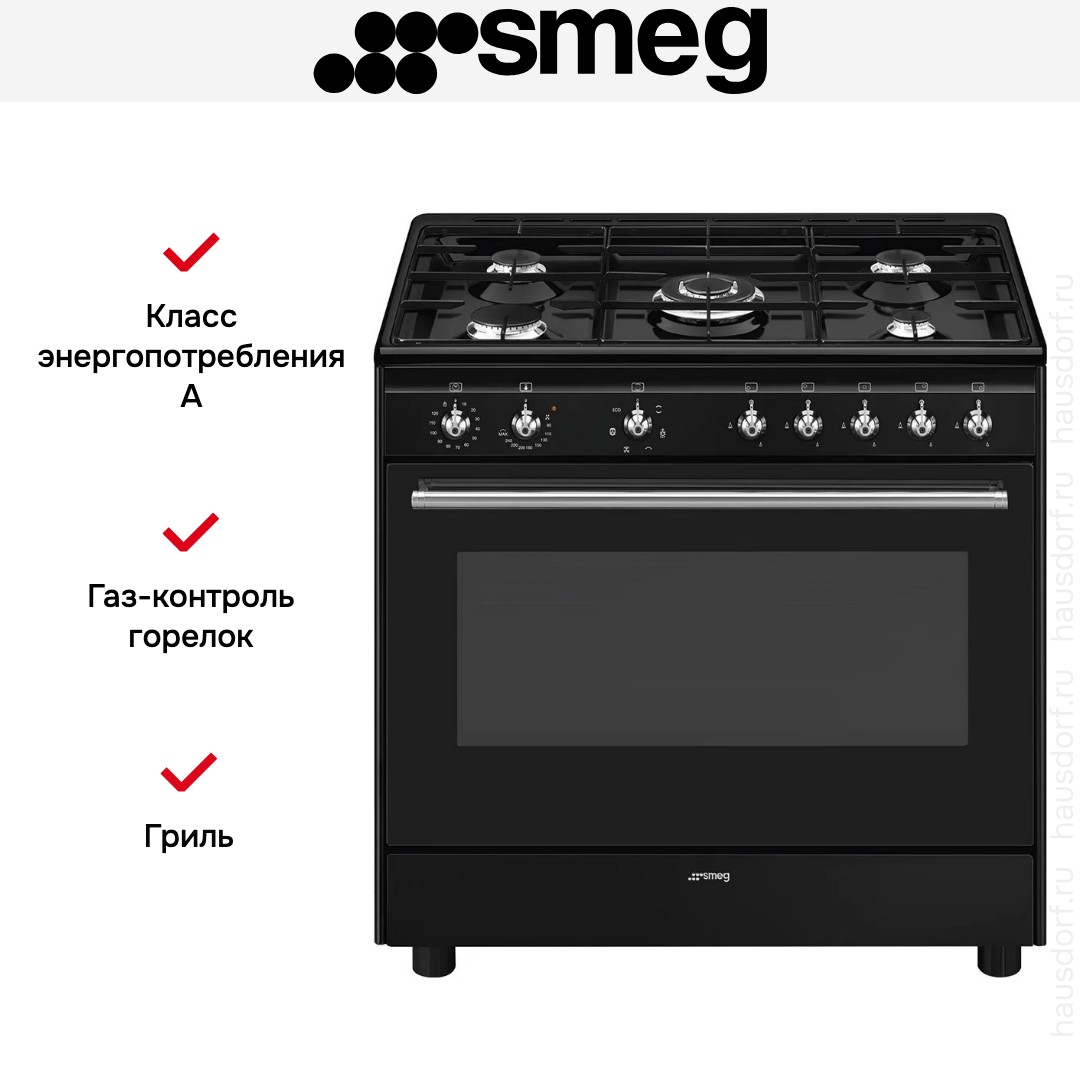 Варочный центр Smeg CX91GMBL выполнен в строгом черном цвете и сочетает газовую поверхность с электрическим духовым шкафом. Его габариты 90×90×60 см делают прибор заметным, но удобным для стандартной кухни. Внешний вид строится на контрасте матовой панели и эмалированных решеток, что придаёт мебели Premium-акцент.