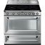 Многофункциональный отдельностоящий варочный центр Smeg в цвете нержавеющей стали. Боковины прибора матовые черные. Предусмотрен выдвижной ящик для хранения, а для плавного открытия дверцы духовки установлены петли Soft Close.
