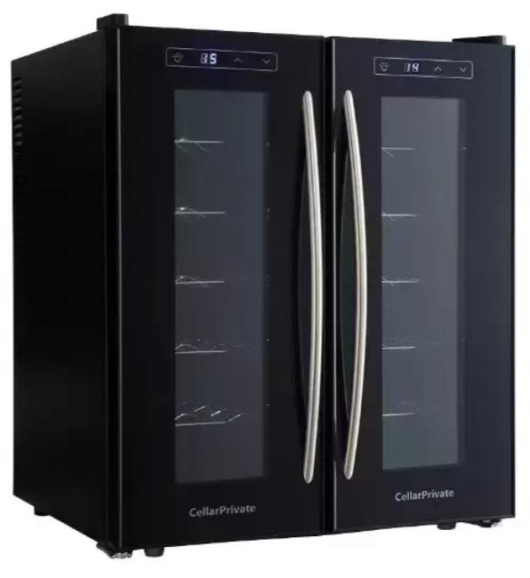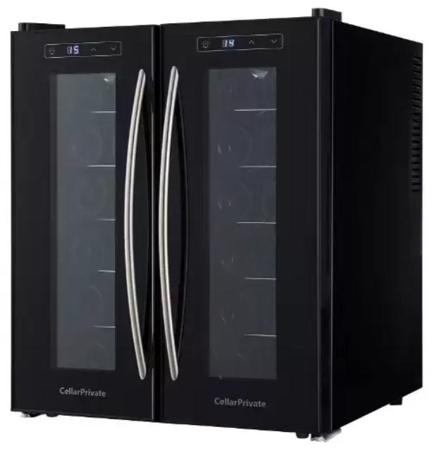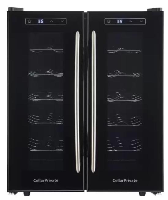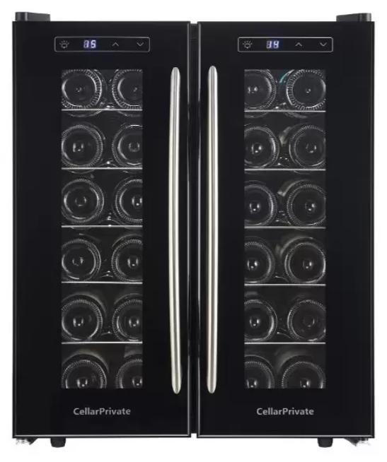 Винный холодильник CellarPrivate CP024-2T имеет две температурные зоны, в которых одновременно можно хранить разные сорта алкоголя и выставлять разные сочетания настроек. Он устанавливается отдельно, что удобно, если у вас есть специальное помещение — кладовая, погреб и т.д. Благодаря компактным размерам данная модель — отличный выбор для офиса, гостиничного номера. Количество бутылок, которое можно разместить с учетом полной комплектации и из расчета объема бутылки 0,75 л, — 24 шт.