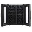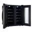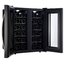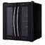 Стеклянная дверь — дополнительный изящный штрих к общему дизайну модели. Специальное покрытие защищает вино от влияния ультрафиолетовых лучей, которые проникают, если шкаф находится в солнечной комнате. Цвет корпуса — черный.