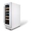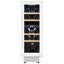 Стеклянная дверь — дополнительный изящный штрих к общему дизайну модели. Специальное покрытие защищает вино от влияния ультрафиолетовых лучей, которые проникают, если шкаф находится в солнечной комнате. Цвет корпуса — белый. Дверь можно перевесить на другую сторону, поэтому вариантов размещения его в доме становится больше.