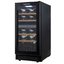 Стеклянная дверь — дополнительный изящный штрих к общему дизайну модели. Специальное покрытие защищает вино от влияния ультрафиолетовых лучей, которые проникают, если шкаф находится в солнечной комнате. Цвет корпуса — черный. Дверь можно перевесить на другую сторону, поэтому вариантов размещения его в доме становится больше.