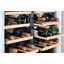 Ширина винного шкафа, как и другие их габариты, обязательно учитывается при выборе модели для домашнего или профессионального использования. Встраиваемые и отдельно стоящие модели выпускаются в самом широком ассортименте, так что разброс значений максимально велик. Неизменным спросом пользуются винные шкафы стандартной ширины — от 40 до 80 см, в современном и классическом стиле. Для встраиваемых шкафов наиболее удобной является ширина 60 см, позволяющая устанавливать их в кухонную тумбу или колонну. Вместимость их может быть самой различной и зависит в большей степени от высоты прибора. Маленькие винные шкафы с размещением на столешнице или даже с креплением к стене, рассчитанные на хранение от одной до десяти бутылок, могут иметь минимальную ширину от 13 см. На полках у них обычно помещается не более 5 бутылок, и используются они для охлаждения вина перед подачей. Большие винные шкафы с несколькими камерами и температурными зонами для длительного хранения и созревания разных сортов вина могут иметь ширину до 180 см, а максимальное значение этого параметра может составить 300 см. Как правило, это отдельно стоящие модели в деревянном корпусе с камерами side-by-side.