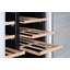 Полки в винных шкафах позволяют размещать бутылки для хранения в горизонтальном положении. Это необходимо, чтобы пробка постоянно смачивалась жидкостью и не пересыхала. Плотно закрытая пробка гарантирует, что внутрь бутылки не проникнет наружный воздух. Кислород, содержащийся в воздухе, может стать причиной ухудшения вкуса вина и даже его скисания. Кроме того, горизонтальное положение позволяет лучше оценить количество осадка. Материал изготовления полок выбирается, исходя из требований, предъявляемых к содержанию коллекции вин. Одним из основных требования является отсутствие или максимальное сокращение вибрации и хорошая фиксация бутылок на месте хранения. Даже если полка выдвигается, бутылки должны оставаться на своем месте. Второе требование исключает применение стеклянных полок, как в обычном холодильнике: на них почти невозможно зафиксировать бутылки.