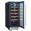 Современные винные шкафы всех типов, в том числе компрессорные, темоэлектрические и абсорбционные, оснащаются электронной системой управления — кнопочной или сенсорной. Панель управления, с помощью которой производится регулировка параметров работы, может размещаться внутри винного шкафа за дверцей или снаружи в верхней части корпуса. Второй вариант более удобен, поскольку для изменения параметров не нужно открывать дверцу. Кроме того, такое расположение панели управления позволяет поддерживать более стабильную температуру в камере. Однако для больших винных шкафов в классическом стиле из ценных пород дерева предпочтительнее скрытая панель управления, которая не портит их внешний вид.