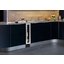 Встраиваемые холодильники для вина оснащаются специальной системой вентиляции: охлаждающая система у них находится в нижней части корпуса спереди. На такие устройства не навешивается мебельный фасад: дверца с затемненным стеклом остается на виду и открывается на достаточно широкий угол для свободного выдвижения деревянных полок.