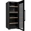 Стеклянная дверь — дополнительный изящный штрих к общему дизайну модели. Специальное покрытие защищает вино от влияния ультрафиолетовых лучей, которые проникают, если шкаф находится в солнечной комнате. Цвет корпуса — черный.