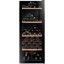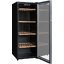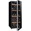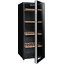 Стеклянная дверь — дополнительный изящный штрих к общему дизайну модели. Специальное покрытие защищает вино от влияния ультрафиолетовых лучей, которые проникают, если шкаф находится в солнечной комнате. Цвет корпуса — черный. Дверь можно перевесить на другую сторону, поэтому вариантов размещения его в доме становится больше.