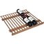 Полки в винных шкафах позволяют размещать бутылки для хранения в горизонтальном положении. Это необходимо, чтобы пробка постоянно смачивалась жидкостью и не пересыхала. Плотно закрытая пробка гарантирует, что внутрь бутылки не проникнет наружный воздух. Кислород, содержащийся в воздухе, может стать причиной ухудшения вкуса вина и даже его скисания. Кроме того, горизонтальное положение позволяет лучше оценить количество осадка. Материал изготовления полок выбирается, исходя из требований, предъявляемых к содержанию коллекции вин. Одним из основных требования является отсутствие или максимальное сокращение вибрации и хорошая фиксация бутылок на месте хранения. Даже если полка выдвигается, бутылки должны оставаться на своем месте. Второе требование исключает применение стеклянных полок, как в обычном холодильнике: на них почти невозможно зафиксировать бутылки.