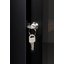 Замок в винных шкафах предназначается для предотвращения нежелательного доступа — в частности, для защиты винной коллекции от детей. Механический замок может располагаться на дверце, как у обычного шкафа или сейфа. Если же дверца холодильника полностью изготовлена из стекла, замок может находиться на цокольной решетке. Такие замки комплектуются набором ключей. Иногда на дверце устанавливаются электронные замки, открыть которые можно при помощи комбинации кнопок или при помощи чипа. Выбрать шкаф с замком можно как для установки в баре или кафе, так и для домашнего использования.