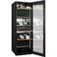 Встраиваемые холодильники для вина оснащаются специальной системой вентиляции: охлаждающая система у них находится в нижней части корпуса спереди. На такие устройства не навешивается мебельный фасад: дверца с затемненным стеклом остается на виду и открывается на достаточно широкий угол для свободного выдвижения деревянных полок.