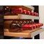 Полки в винных шкафах позволяют размещать бутылки для хранения в горизонтальном положении. Это необходимо, чтобы пробка постоянно смачивалась жидкостью и не пересыхала. Плотно закрытая пробка гарантирует, что внутрь бутылки не проникнет наружный воздух. Кислород, содержащийся в воздухе, может стать причиной ухудшения вкуса вина и даже его скисания. Кроме того, горизонтальное положение позволяет лучше оценить количество осадка. Материал изготовления полок выбирается, исходя из требований, предъявляемых к содержанию коллекции вин. Одним из основных требования является отсутствие или максимальное сокращение вибрации и хорошая фиксация бутылок на месте хранения. Даже если полка выдвигается, бутылки должны оставаться на своем месте. Второе требование исключает применение стеклянных полок, как в обычном холодильнике: на них почти невозможно зафиксировать бутылки.