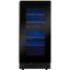 Современные винные шкафы всех типов, в том числе компрессорные, темоэлектрические и абсорбционные, оснащаются электронной системой управления — кнопочной или сенсорной. Панель управления, с помощью которой производится регулировка параметров работы, может размещаться внутри винного шкафа за дверцей или снаружи в верхней части корпуса. Второй вариант более удобен, поскольку для изменения параметров не нужно открывать дверцу. Кроме того, такое расположение панели управления позволяет поддерживать более стабильную температуру в камере. Однако для больших винных шкафов в классическом стиле из ценных пород дерева предпочтительнее скрытая панель управления, которая не портит их внешний вид.
